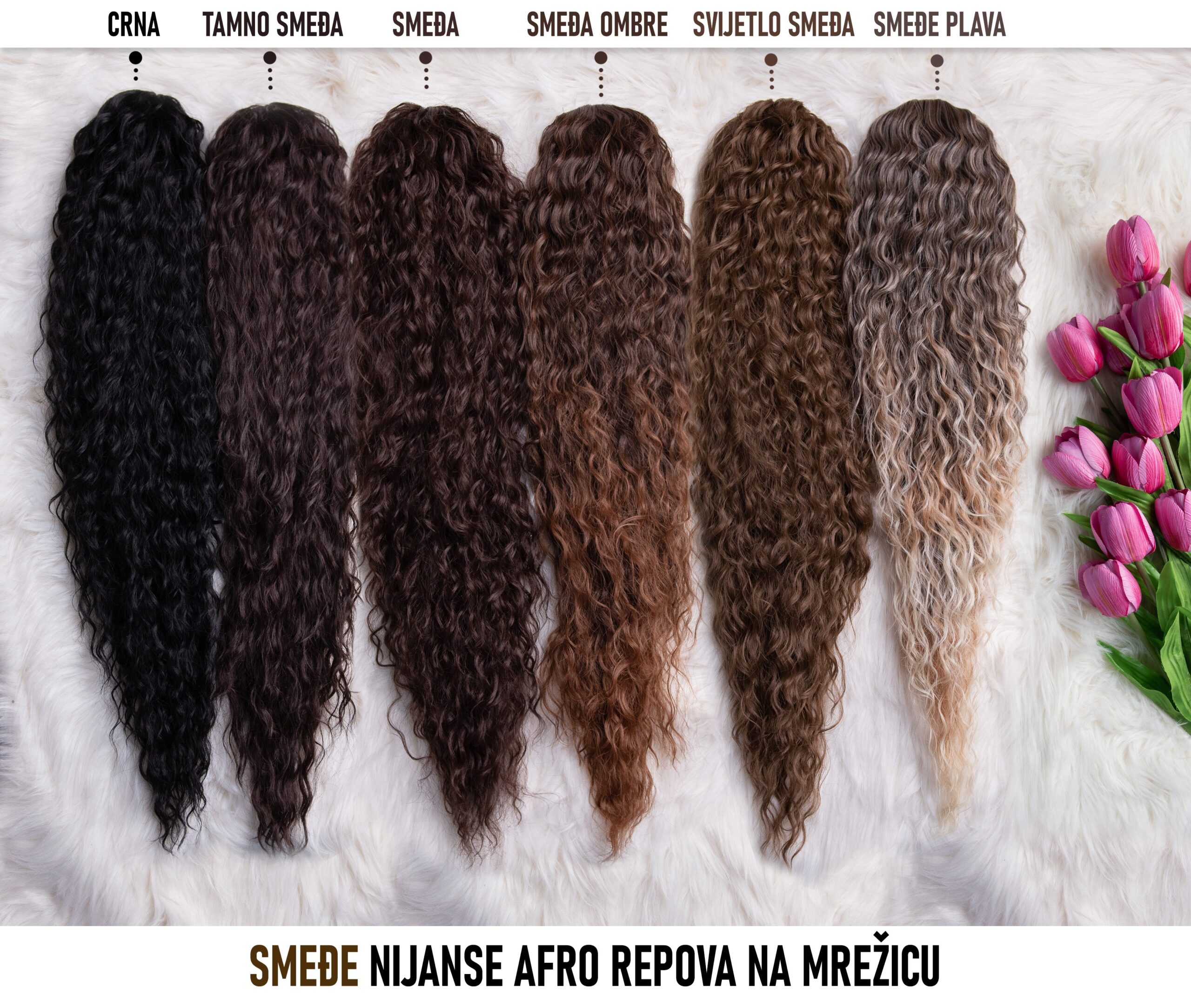Tamno Smeđa │ Afro │ 80cm │ Rep na mrežicu